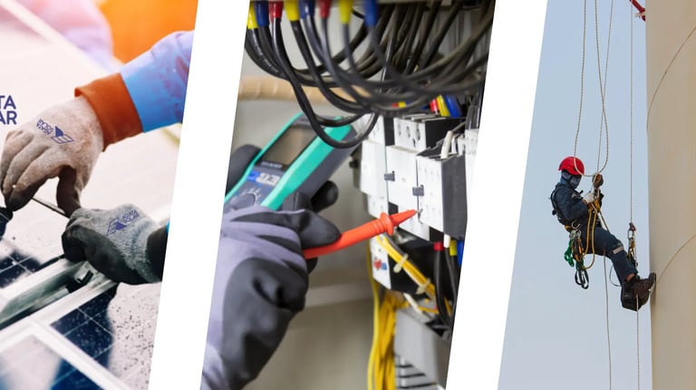 incluindo projeto e instalação de energia solar fotovoltaica, padrão de entrada, subestação simplificada e serviços em altura onde só é possível o acesso por corda com eletricidade e refrigeração (Ar condicionado).