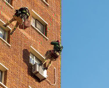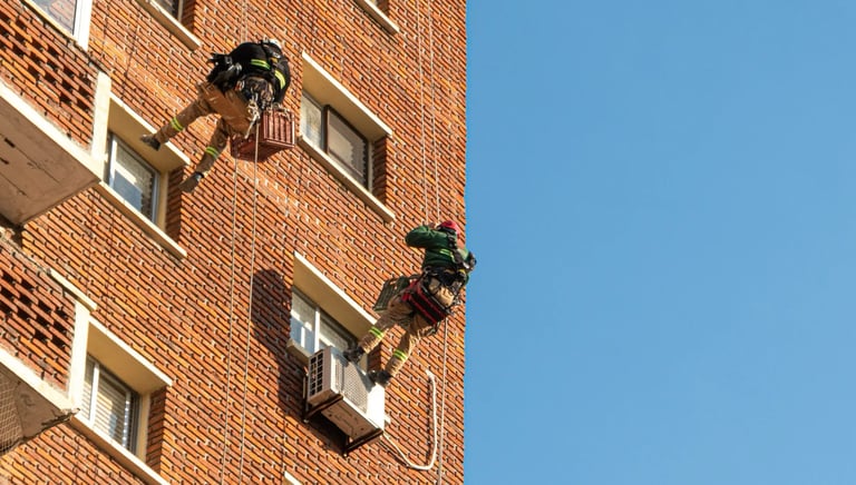 . Manutenção de pastilhas de faxada de prédios e outros com acesso por corda.
