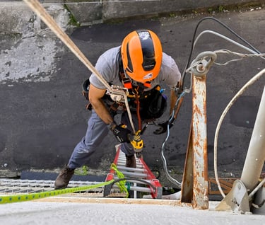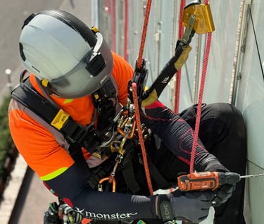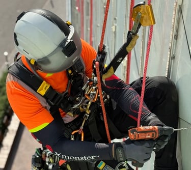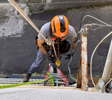 . Instalação / manutenção de ar condicionado em prédios, condomínio, indústria e outros com acesso somente por cordas, em altura.